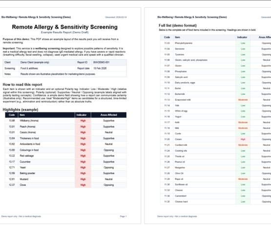 Please note: Whilst the Bio-Wellbeing Practice recommends a holistic approach to health it is recommended to consult your GP for all medical conditions.
